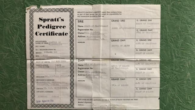 In my research on the history of the Icelandic Sheepdog, I have come across many interesting stories about dogs and people. I'm trying to structure all the material I've read and gathered to present it on this site and also in the exhibition. For this, I read many things more than once to better understand all contexts. For instance, I just revisited [an article about Kátur from Keldur](http://hundalifspostur.is/2016/01/27/ur-sami-katur-fra-keldum/) where it states: "Kátur from Keldur, ID number 11-68, passed away on December 22, 1978. This notable dog, from whom most if not all Ólafsvellir dogs trace their lineage, was born at Keldur in October 1959 and was thus in high age when he died. He spent the first years of his life in Írafell in Kjós but came to Sigríður and Kjartan in Ólafsvellir in 1964 and remained there until his death. Kátur from Keldur was a much-indulged dog in this large household and enjoyed various privileges, as there were always many dogs there. In the last two years, his health deteriorated, his sight and hearing failed, and he became arthritic. Kátur was a very beautiful dog at his best. Red-golden, with a white spot on his neck, white paws, and light in the tail. He was big and handsome, perhaps a bit too long if anything, but otherwise well-built. His temperament was especially good, and no one doubted his intelligence who knew him. He has a vast lineage. Kátur's parents were Klói from Sellátrar and Pollý from Keldur, and all currently living Icelandic dogs trace their lineage back to these notable dogs. G.S." The picture of Kátur that accompanies the article reminded me of the picture I used in the blog post about Strútur, Kolur, and Mark Watson. That picture is of Kolur, Strútur's father. I started looking into the material Salín sent me about Strútur, and among other things, there is a copy of Strútur's pedigree. There I saw that Kolur, Strútur's father, is not a son of Kátur, but Strútur's mother is a daughter of Kátur from Keldur. Her name was Píla from Ólafsvellir and her mother's name Táta from Keldur. Upon closer inspection, it turns out that Táta, Kátur, and Kolur's mother, named Skotta from Sætún, were all siblings. Look at the picture above for a better understanding! Their parents were, as mentioned above, Klói from Sellátrar and Pollý from Keldur. Klói had four offspring with Pollý, but according to the [DÍF database](https://www.dif.is/hundarnir/hundar_grunnur_einstaklingur.php?id=4582), Pollý also had Snotra. Snotra was a son of Tryggur, who was a descendant of the siblings Kátur and Skotta. Snotra is not listed in the [ISIC database](http://www.islenskurhundur.com/Dog/Details/5097) as far as I know. This clearly illustrates the challenge at the time of breeding the Icelandic Sheepdog from a very small stock of dogs, and it's truly an incredible achievement that it was successful. I decided to include Strútur's pedigree (with thanks to Salín) with this post, and pictures of Klói and Pollý can be found in the [ISIC database](http://www.islenskurhundur.com/Dog/Details/4965).